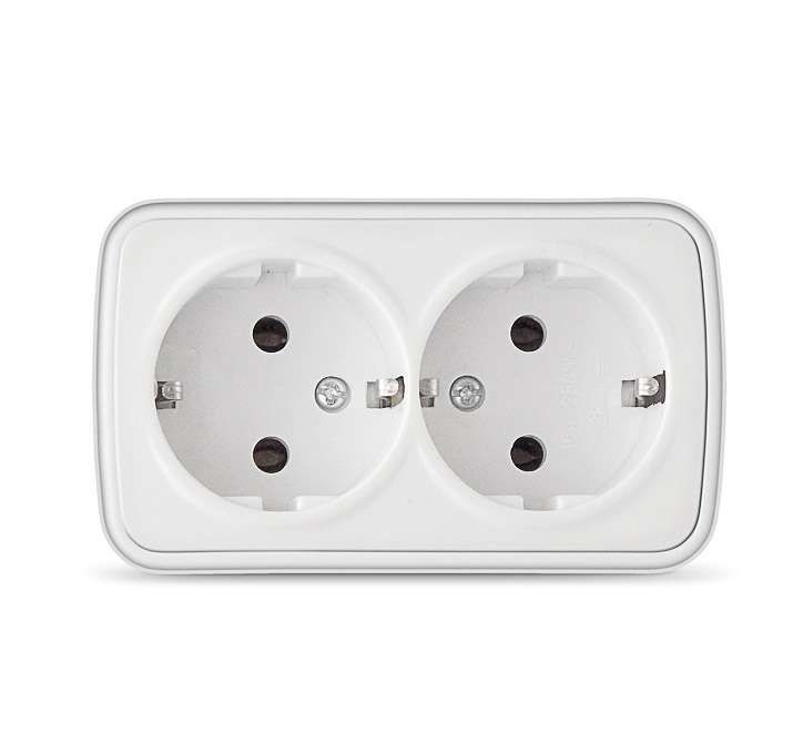 Розетка двойная с заземлением 16А IP20 белая предназначена для подключения бытовых электроприборов мощностью до 3,5 кВт (при 230 В). Подходит для установки на стены в квартирах, домах, гаражах, дачах и других сухих помещениях. Благодаря наличию заземления обеспечивает безопасную работу устройств с металлическими корпусами - холодильников, стиральных машин, компьютеров, микроволновок.