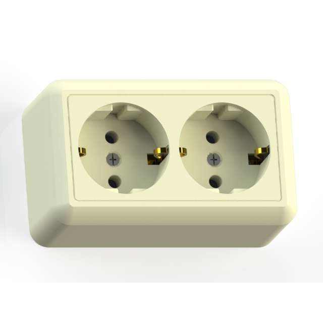 Розетка Кунцево-Электро 8038 - двухместная розетка открытой установки с заземлением и монтажной пластиной, рассчитанная на ток до 16 А. Подходит для надёжного подключения бытовых и профессиональных устройств в помещениях с повышенными требованиями к долговечности и эстетике.