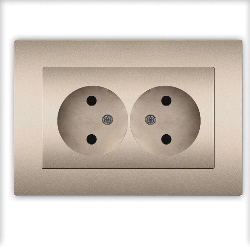 Розетка двухместная UNIVersal серия Афина б/з, с/у, 16А, 220В, шампань (еврослот), механизм - A0102-Br Союз