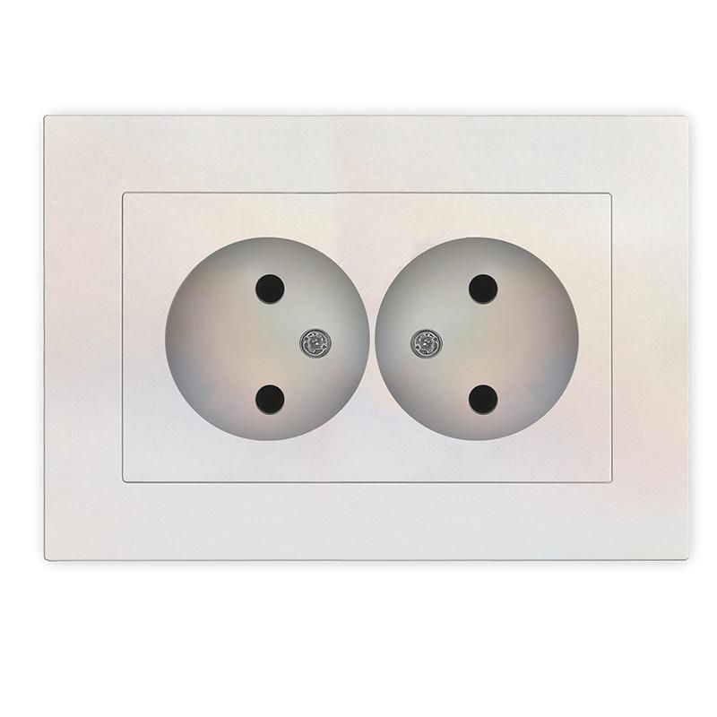 Розетка двухместная серия Афина 16А 220В без заземления (евростандарт) жемчужного цвета подходит для:
