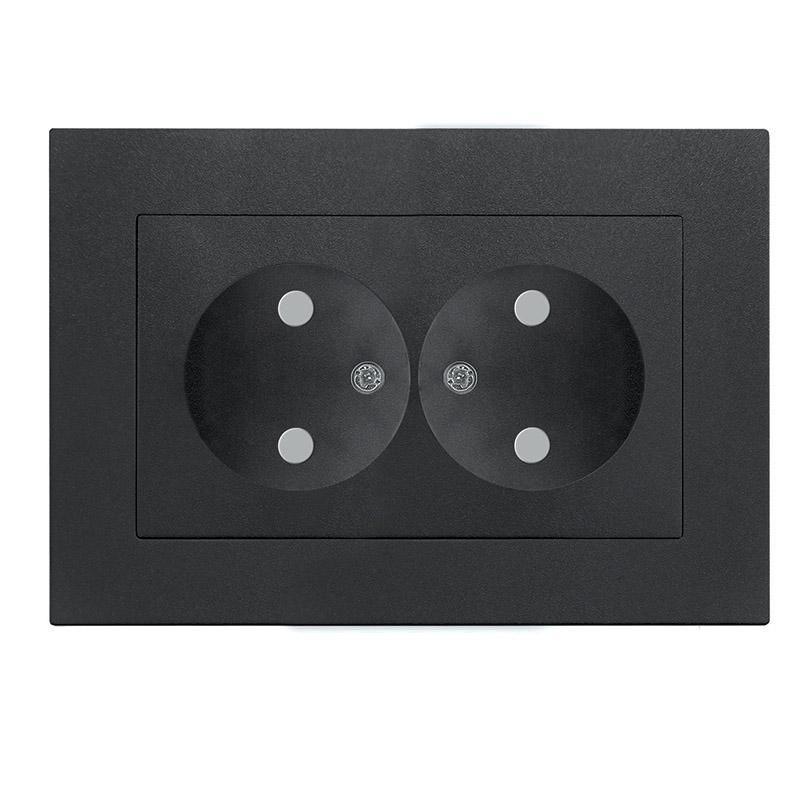 Розетка двухместная серия Афина 16А 220В без заземления с защитными шторками графит (евростандарт) используется там, где требуется подключение устройств с двумя контактами - например, зарядных устройств, настольных ламп, телевизоров, фенов и других маломощных приборов. Подходит для установки в квартирах, детских комнатах, гостиных и офисах. Не предназначена для подключения мощной техники с металлическим корпусом, требующей заземления - таких как стиральные машины, холодильники или бойлеры.