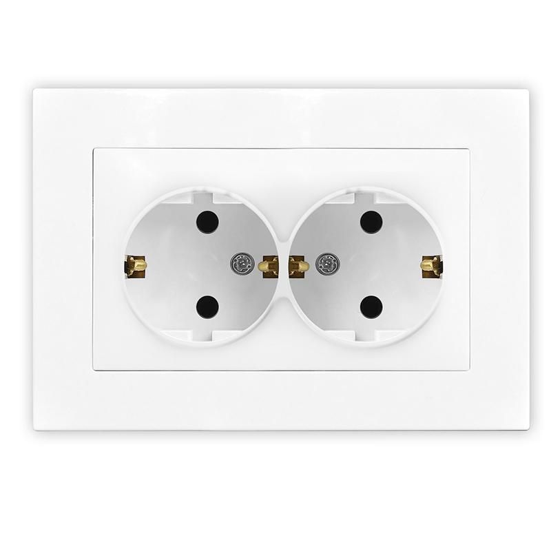 Розетка двухместная UNIVersal серия Афина с/з, с/у, 16А, 220В, механизм, белая (еврослот) - A0128 Союз