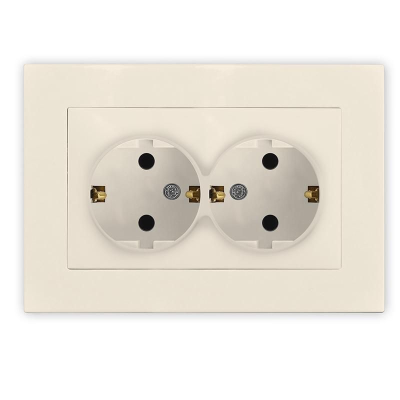 Розетка двухместная UNIVersal серия Афина с/з, с/у, 16А, 220В, слоновая кость (ivory) (еврослот), механизм - A0128-I Союз