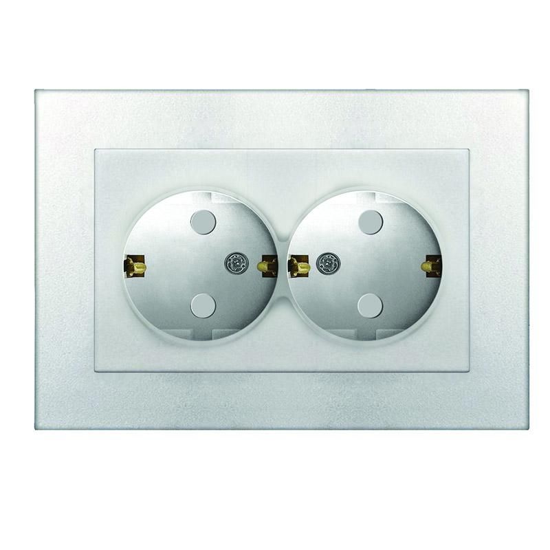 Розетка двухместная UNIVersal серия Афина с/з, с/у, з/ш 16А, 220В, серебро (еврослот), механизм - A0050-S Союз
