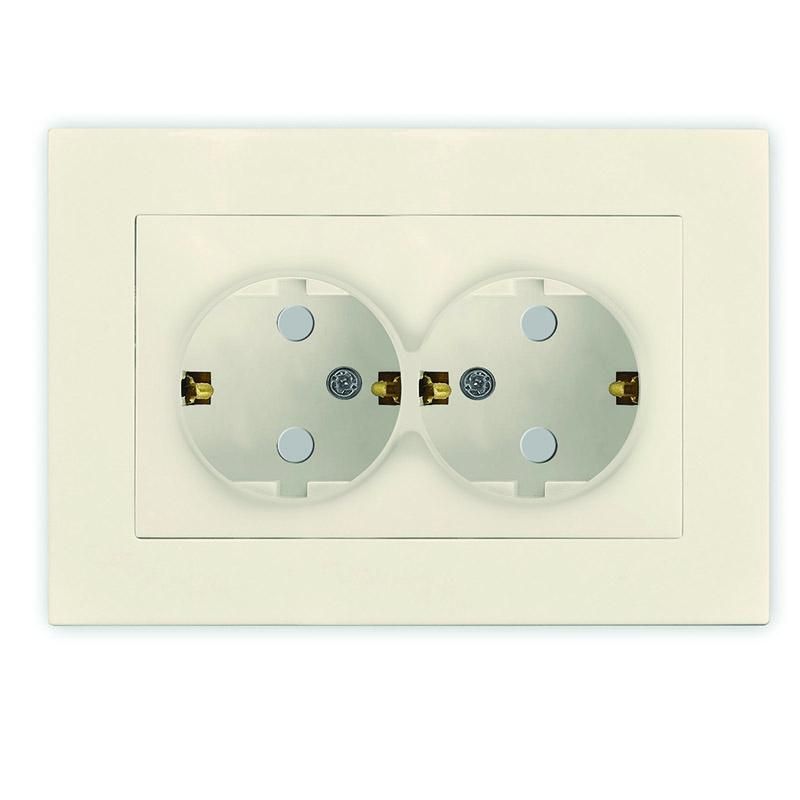 Розетка двухместная UNIVersal серия Афина с/з, с/у, з/ш 16А, 220В, слоновая кость (ivory) (еврослот), механизм - A0050-I Союз