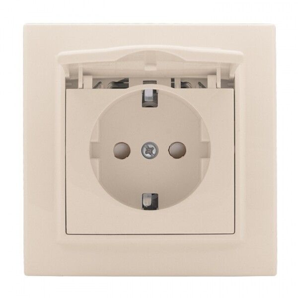 Розетка одноместная СП с заземлением Минск крышкой 16А бежевая защитными шторками - ERR16-029-200 EKF
