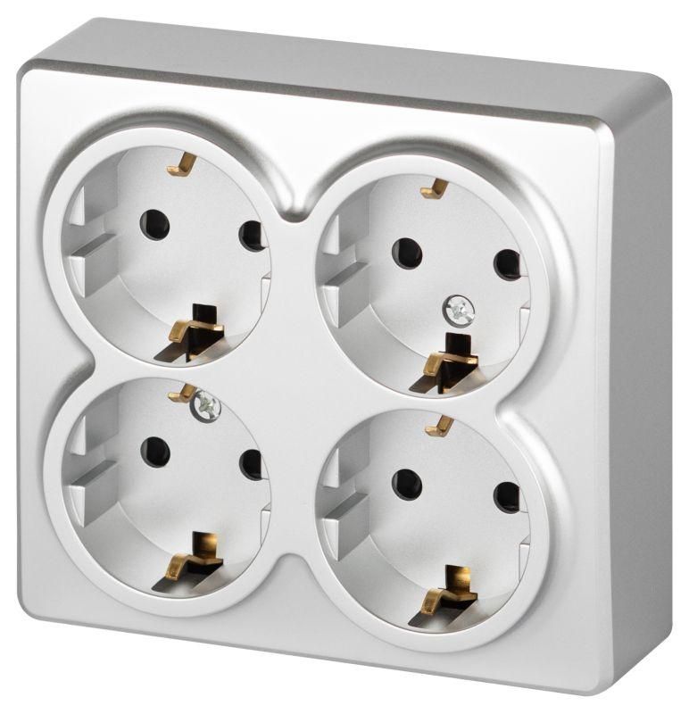 Розетка Эксперт 11-2211-03 четырехместная с заземлением 4х2P+E Schuko со шторками, IP20, 16A-250В, ОУ, алюминий - Б0063022 ЭРА