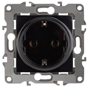 Розетка однофазная скрытого монтажа, в рамку с заземлением без шторок черный 16А 250В IP20 автоматические (безвинтовые) зажимы 12-2001-06 Эра 12 - Б0014686