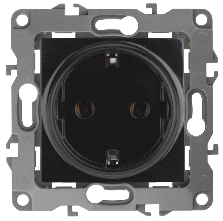Розетка однофазная скрытого монтажа, в рамку с заземлением без шторок черный 16А 250В IP20 автоматические (безвинтовые) зажимы 12-2101-06 Эра 12 - Б0014680