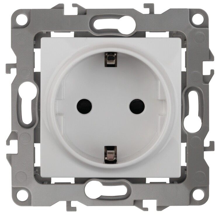 Розетка однофазная скрытого монтажа, в рамку с заземлением со шторками белый 16А 250В IP20 автоматические (безвинтовые) зажимы 12-2102-01 Эра 12 - Б0014687