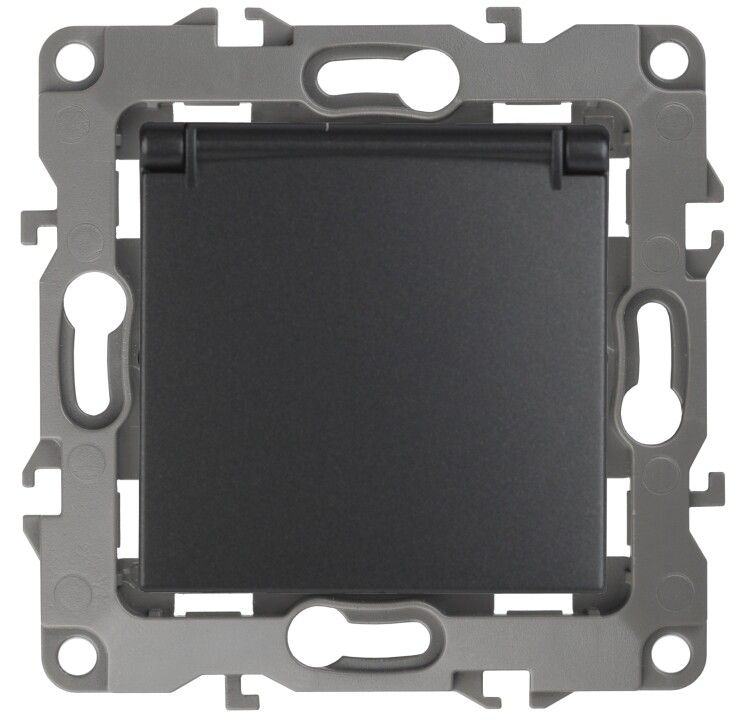 Розетка однофазная скрытого монтажа, в рамку с заземлением со шторками антрацит крышкой 16А 250В IP20 автоматические (безвинтовые) зажимы 12-2103-05 Эра 12 - Б0014697