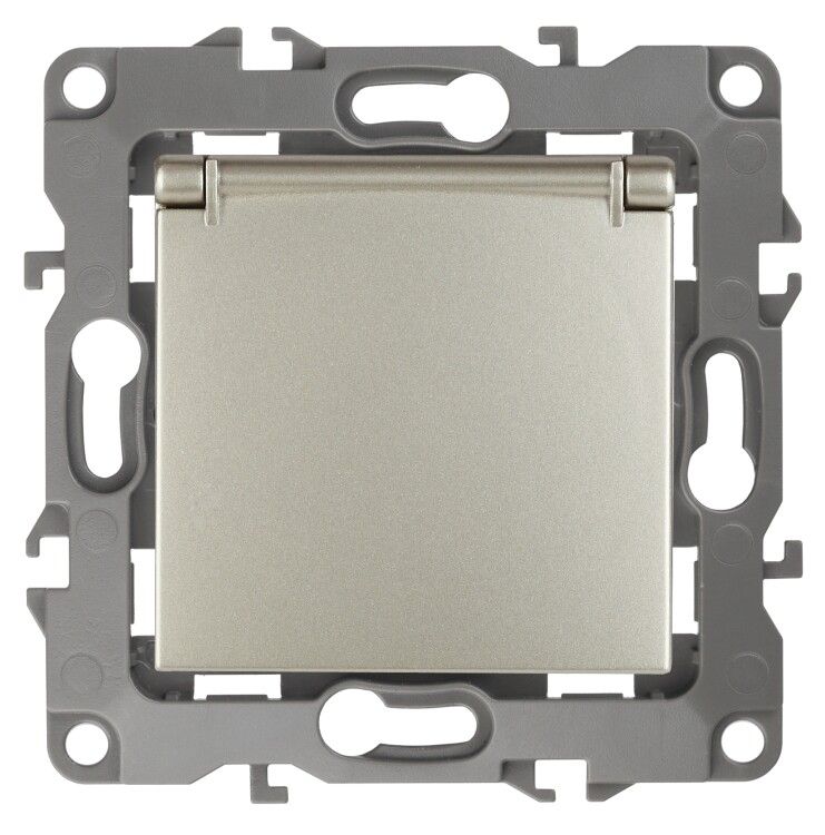 Розетка однофазная скрытого монтажа, в рамку с заземлением со шторками шампань крышкой 16А 250В IP20 автоматические (безвинтовые) зажимы 12-2103-04 Эра 12 - Б0014696