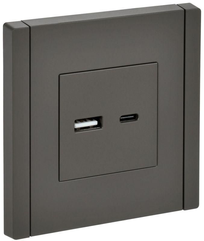 Розетка USB A+C 18Вт серый устанавливается в стандартную круглую или прямоугольную подрозетник (диаметром 68–70 мм). Крепление осуществляется на распорные элементы и шурупы - надежно фиксирует устройство внутри стены. Монтаж выполняется после окончания отделочных работ. Нет необходимости использовать отдельную декоративную рамку - лицевая панель уже имеет законченный вид благодаря запатентованной технологии фиксации без винтов.