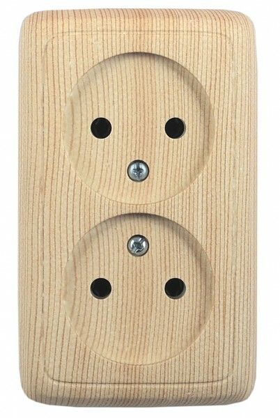 Розетка двойная наружная со шторками с изоляционной пластиной сосна - РА16-144-02 HEGEL