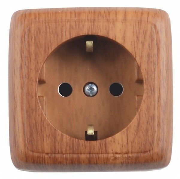 Розетка наружная с заземлением изоляционной пластиной дуб - РА16-113-05 HEGEL
