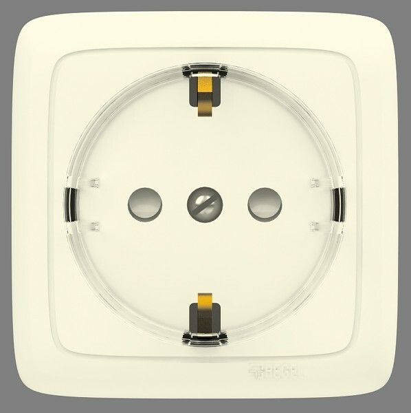 Розетка наружная с заземлением изоляционной пластиной (стакан) слоновая кость - РА16-173-01 HEGEL