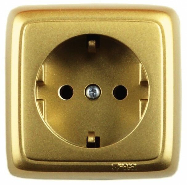 Розетка наружная с заземлением изоляционной пластиной золото - РА16-113-07 HEGEL