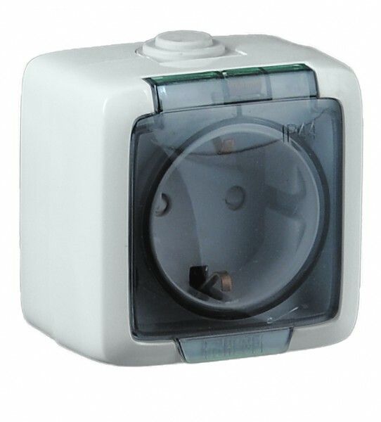Розетка наружная с заземлением шторками белая IP44 - РА16-212 HEGEL предназначена для подключения электроприборов к силовой электрической сети в сухих и влажных помещениях. Она обеспечивает пыле- и брызгозащиту, имеет степень защиты IP44.