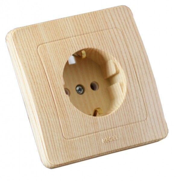 Розетка скрытая с заземлением со шторками сосна - РС16-312-02 HEGEL