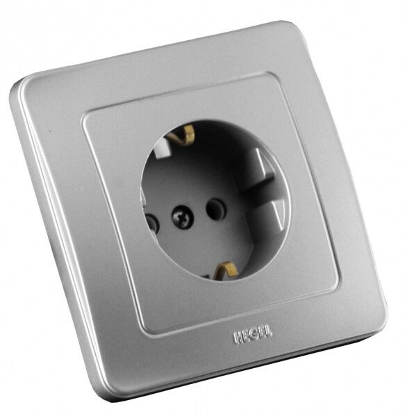 Розетка скрытая с заземлением со шторками серебро - РС16-312-06 HEGEL