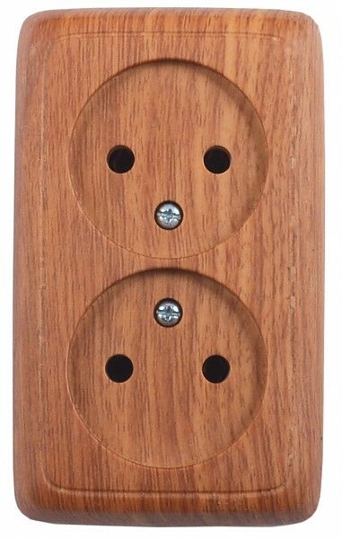 Розетка двойная наружная со шторками с изоляционной пластиной дуб - РА16-144-05 HEGEL