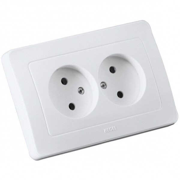 Розетка двойная скрытая со шторками белая - РС16-342 HEGEL