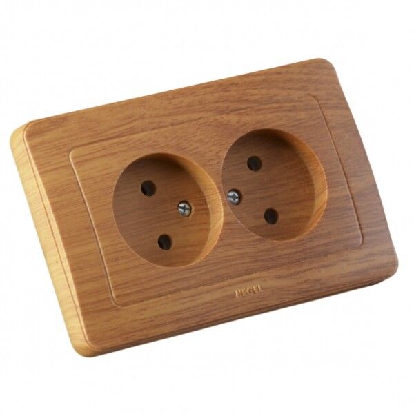 Розетка двойная скрытая со шторками дуб - РС16-342-05 HEGEL