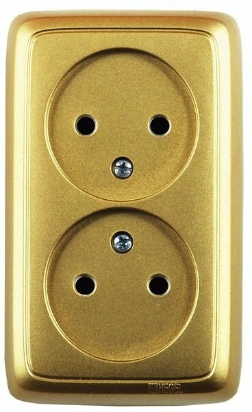 Розетка двойная наружная с изоляционной пластиной золото - РА16-143-07 HEGEL