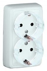 Розетка двойная наружная с заземлением шторками изолирующей пластиной (стакан) белая - РА16-184 HEGEL