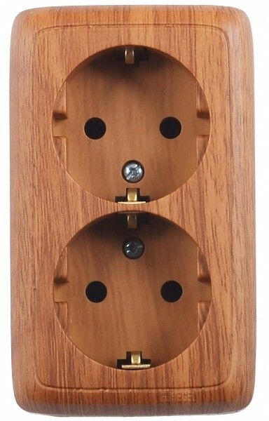 Розетка двойная наружная с заземлением изоляционной пластиной дуб - РА16-153-05 HEGEL