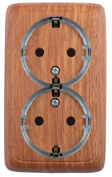 Розетка двойная наружная с заземлением шторками изолирующей пластиной (стакан) дуб - РА16-184-05 HEGEL