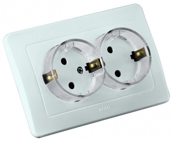 Розетка двойная скрытая с заземлением со шторками (стакан) белая - РС16-382 HEGEL