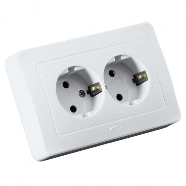 Розетка двойная скрытая с заземлением со шторками белая - РС16-352 HEGEL