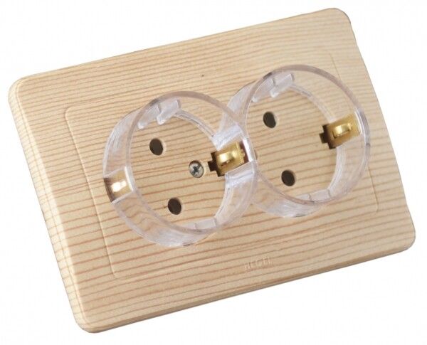 Розетка двойная скрытая с заземлением со шторками (стакан) сосна - РС16-382-02 HEGEL