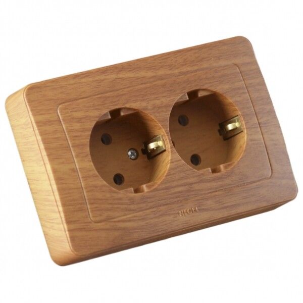 Розетка двойная скрытая с заземлением со шторками дуб - РС16-352-05 HEGEL