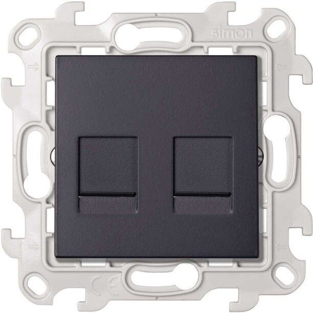Розетка информационная 2xRJ45 Cat.6 UTP, цвет графит, Simon 24 Harmonie | 2410600-038