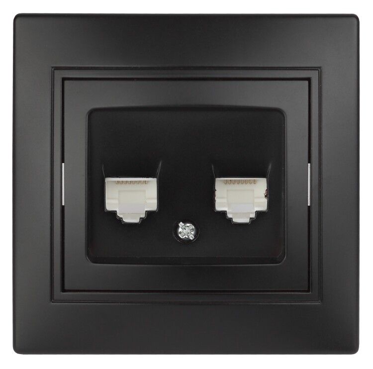 Розетка информационная 2xRJ45, СУ, Plano, антрацит, серия Intro используется для организации проводного интернет-соединения в стенах зданий. Подходит для установки в квартирах, офисах, учебных заведениях и других объектах, где требуется стационарный доступ к сети через кабель CAT5e/CAT6. Два порта RJ45 позволяют одновременно подключить два устройства - например, компьютер и IP-камеру, или маршрутизатор и телевизор.