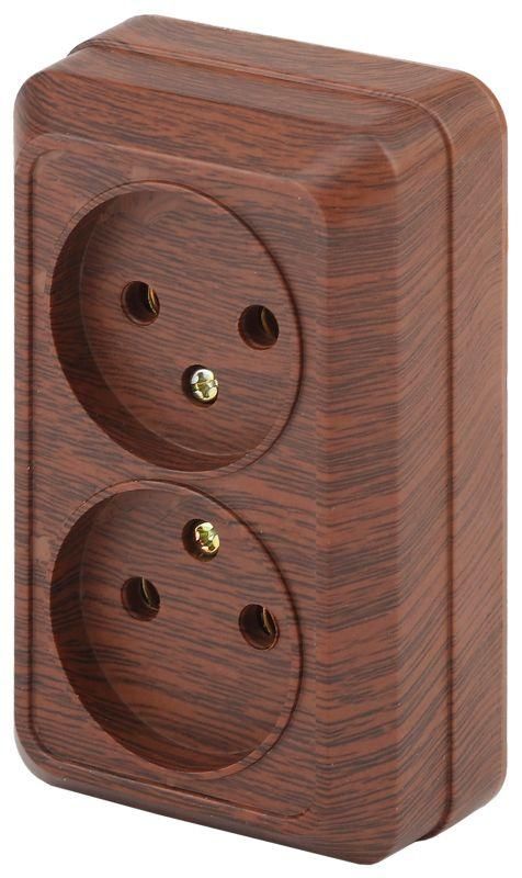 Розетка двойная без заземления 2х2P, 16А-250В, IP20, открытая установка, венге - это простое и надёжное решение для подключения бытовых приборов в помещениях без необходимости заземления. Модель из серии Intro Quadro от бренда ЭРА с артикулом б0053796 рассчитана на постоянную нагрузку до 16 А и подходит для открытой установки в жилых и административных помещениях.