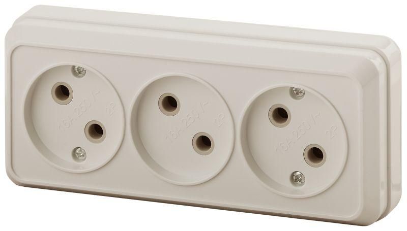 Розетка однофазная тройная наружная (открытой установки) без шторок слоновая кость 16А 250В IP20 2-205-02 Intro Quadro - Б0053813 ЭРА