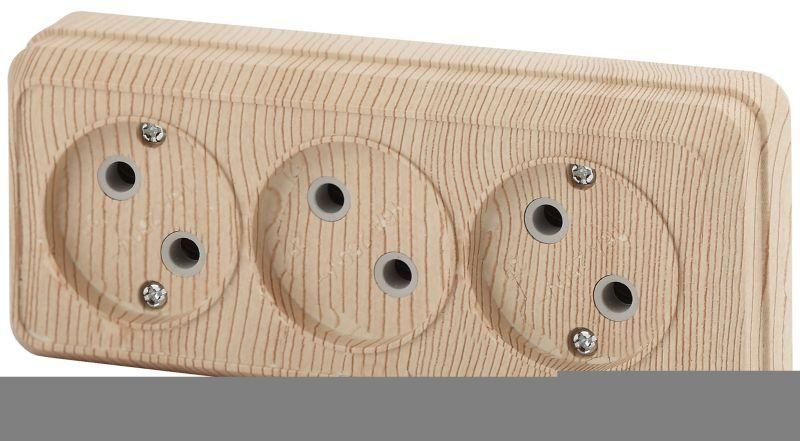 Розетка однофазная тройная наружная (открытой установки) без шторок сосна 16А 250В IP20 2-205-11 Intro Quadro - Б0053817 ЭРА