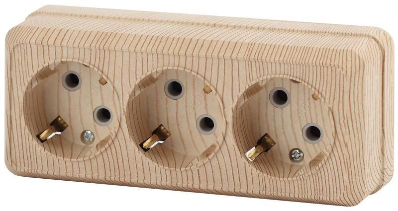 Розетка однофазная тройная наружная (открытой установки) с заземлением без шторок сосна 16А 250В IP20 2-206-11 Intro Quadro - Б0053826 ЭРА