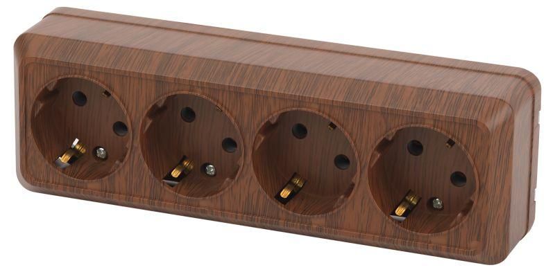 Розетка однофазная четырехместная наружная (открытой установки) с заземлением без шторок венге 16А 250В IP20 2-208-10 Intro Quadro - Б0053842 ЭРА