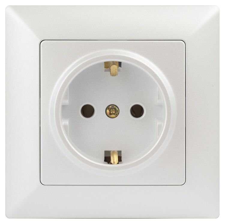 Розетка однофазная скрытого монтажа, в рамку с заземлением без шторок перламутр 16А 250В IP20 4-202-06 Intro Solo - Б0053654 ЭРА