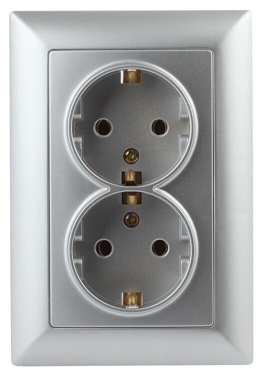Розетка двойная с заземлением 2X2P+E Schuko, 16А-250В, IP20, СУ, алюминий, серия Solo 4-205-03 - это надёжное решение для скрытой установки в жилых и офисных помещениях. Выполненная из негорючего термопласта, розетка серии Intro Solo обеспечивает безопасное подключение двух устройств одновременно с заземлением, совместима с европейскими вилками типа Schuko. Артикул б0053664 соответствует стандартным требованиям к внутренней проводке.