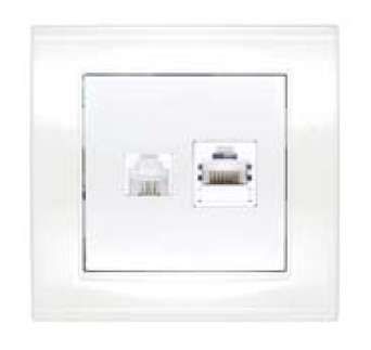 Розетка компьютерная + телефонная 2-м СП Бриллиант бел. UNIVersal 7947618 Союз