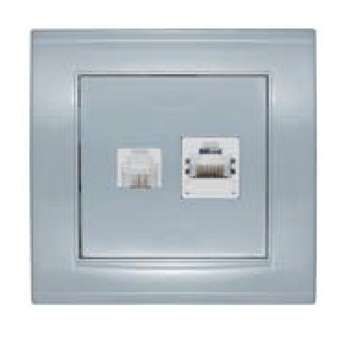 Розетка компьютерная + телефонная 2-м СП Бриллиант серебр. UNIVersal 7949865 Союз