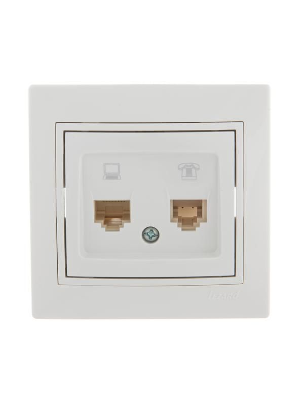 Розетка компьютерная + телефонная 2-м СП Mira RJ45 RJ11 бел./бел. LEZARD 701-0202-143