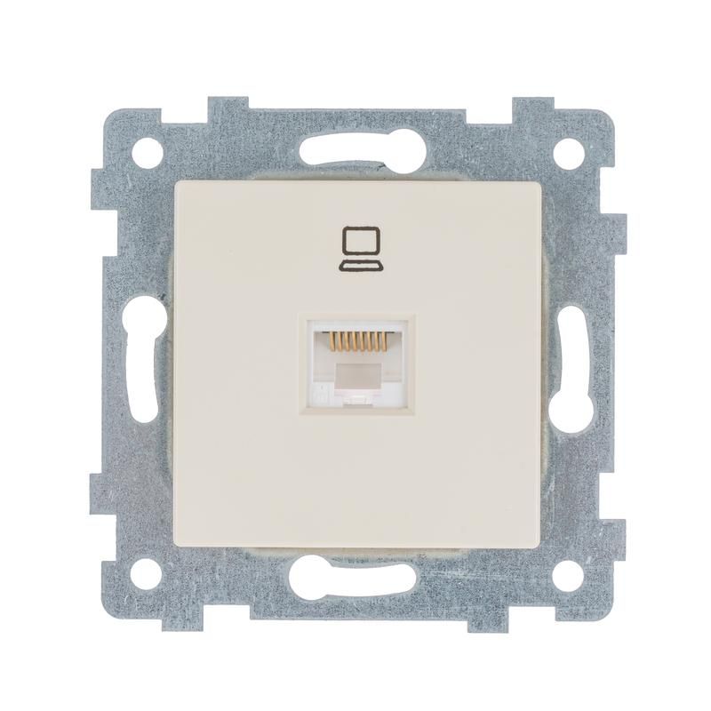 Механизм розетки RJ45 скрытой установки РК1-458, категория 5E, слоновая кость от бренда Кунцево-Электро (артикул 122004) предназначен для организации проводной сети Ethernet в стационарных объектах. Этот элемент системы коммуникаций устанавливается внутрь стеновой коробки и обеспечивает надёжный контакт для сетевых кабелей категории 5E.