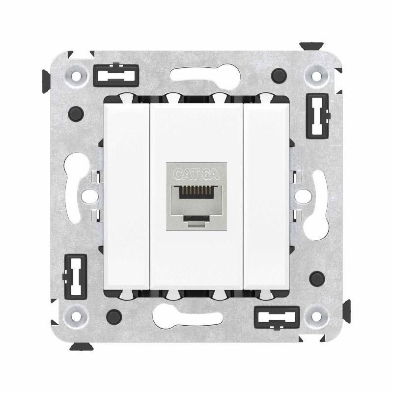 Розетка компьютерная RJ-45 кат.6А одинарная экранированная без шторки для скрытого монтажа используется для подключения устройств к локальной сети - компьютеров, серверов, IP-камер, телефонов VoIP, принтеров и другого сетевого оборудования. Подходит для монтажа в стены зданий, где требуется чистый внешний вид и минимизация внешних воздействий. Часто применяется в паре с патч-панелями в распределительных щитах, телекоммуникационных шкафах и на рабочих местах.