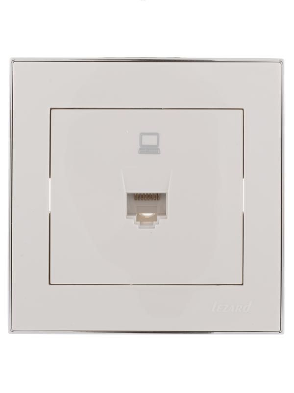 Розетка компьютерная 1-м СП Rain RJ45 с хром. боковой вставкой бел. LEZARD 703-0225-139